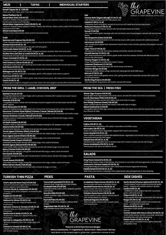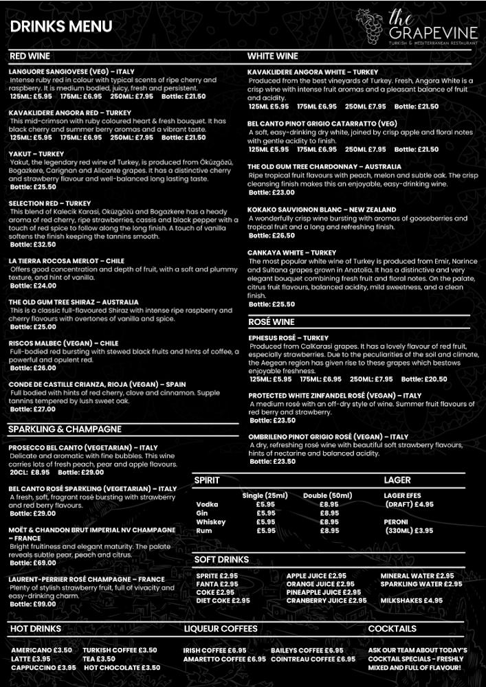 Conveniently located at 14 Leys Ave, The Grapevine Turkish Restaurant basks in Letchworth Garden City's charm. This bustling area stands out for its cleanliness and picturesque surroundings. Large windows flood the restaurant with natural light, creating a warm and inviting environment. The modern décor gives it a trendy edge while maintaining a casual vibe—perfect for a cozy dinner or lunch out with friends.